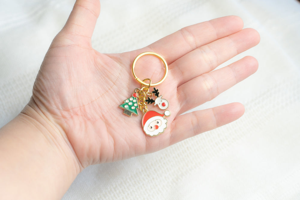 Christmas Charm Keychain • Santa, Tree, Reindeer, Personalized Initial Keychain