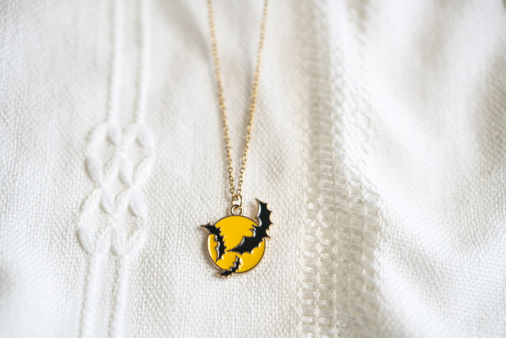 Personalized Halloween Bat Over the Moon Necklace,
