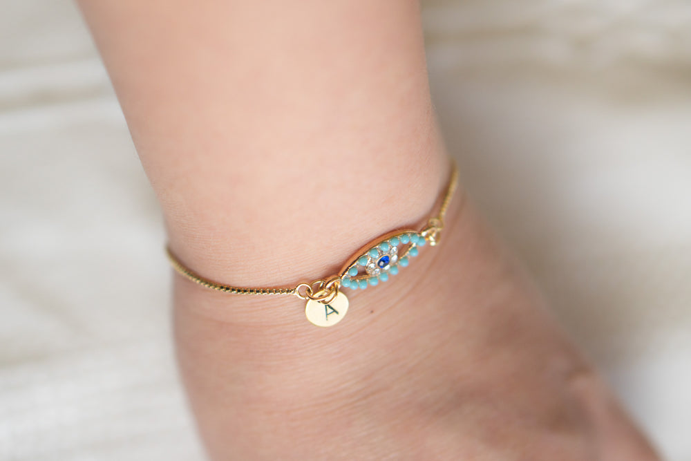 Evil Eye with Initial Charm Bracelet