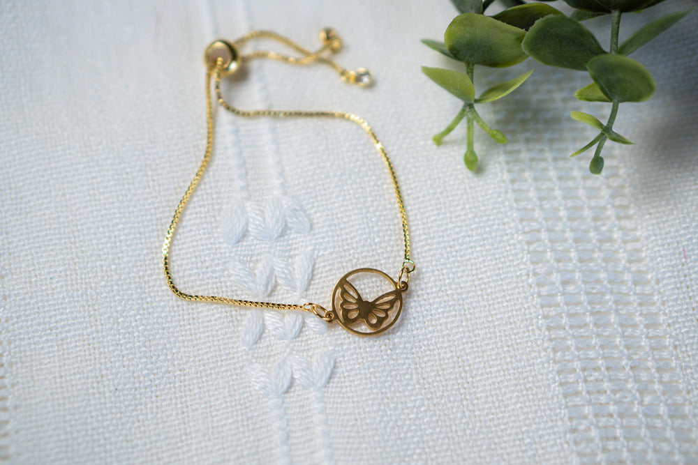 Gold Butterfly in a circle Bracelet
