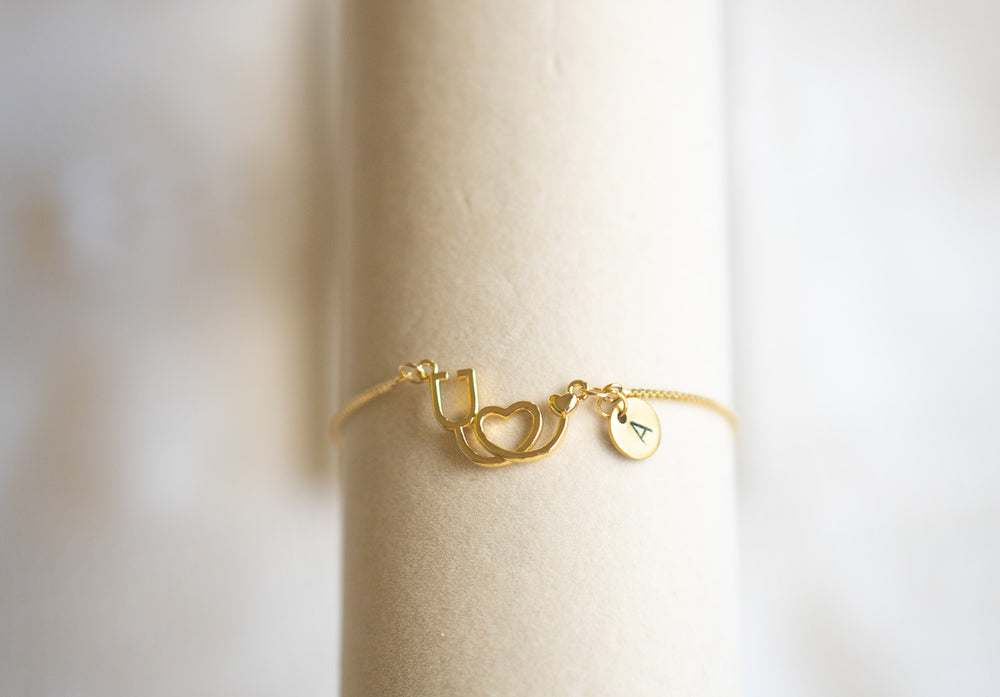 Gold Stethoscopes Heart Charm Bracelet