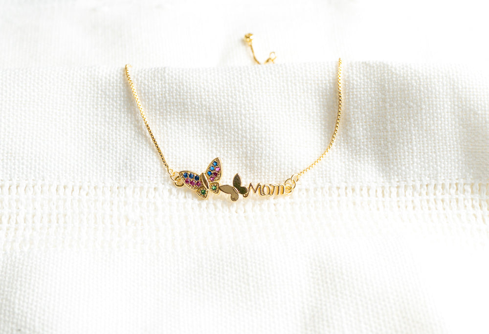 Mama Bracelet: Gold Butterfly Charm, Personalized Initial Bracelet