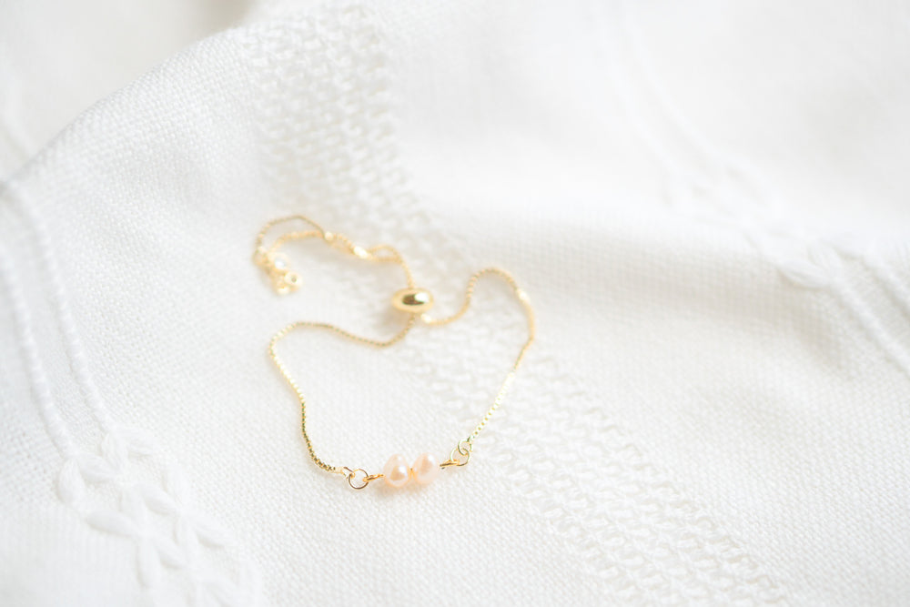 Natural Freshwater Dainty Peach Pearl Bracelet,