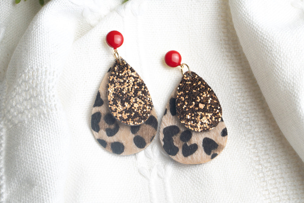 Leopard Cheetah Faux Fur imitation leather Drop Earrings