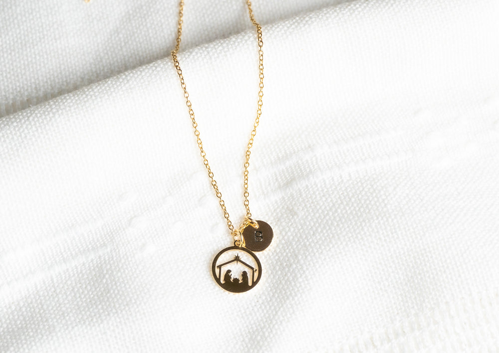 Golden Bethlehem star Nativity Scene Pendant Necklace