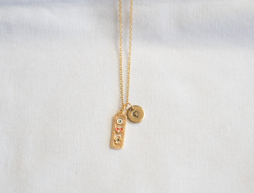 Small Gold Hamsa Hand Heart in Rectangle Necklace