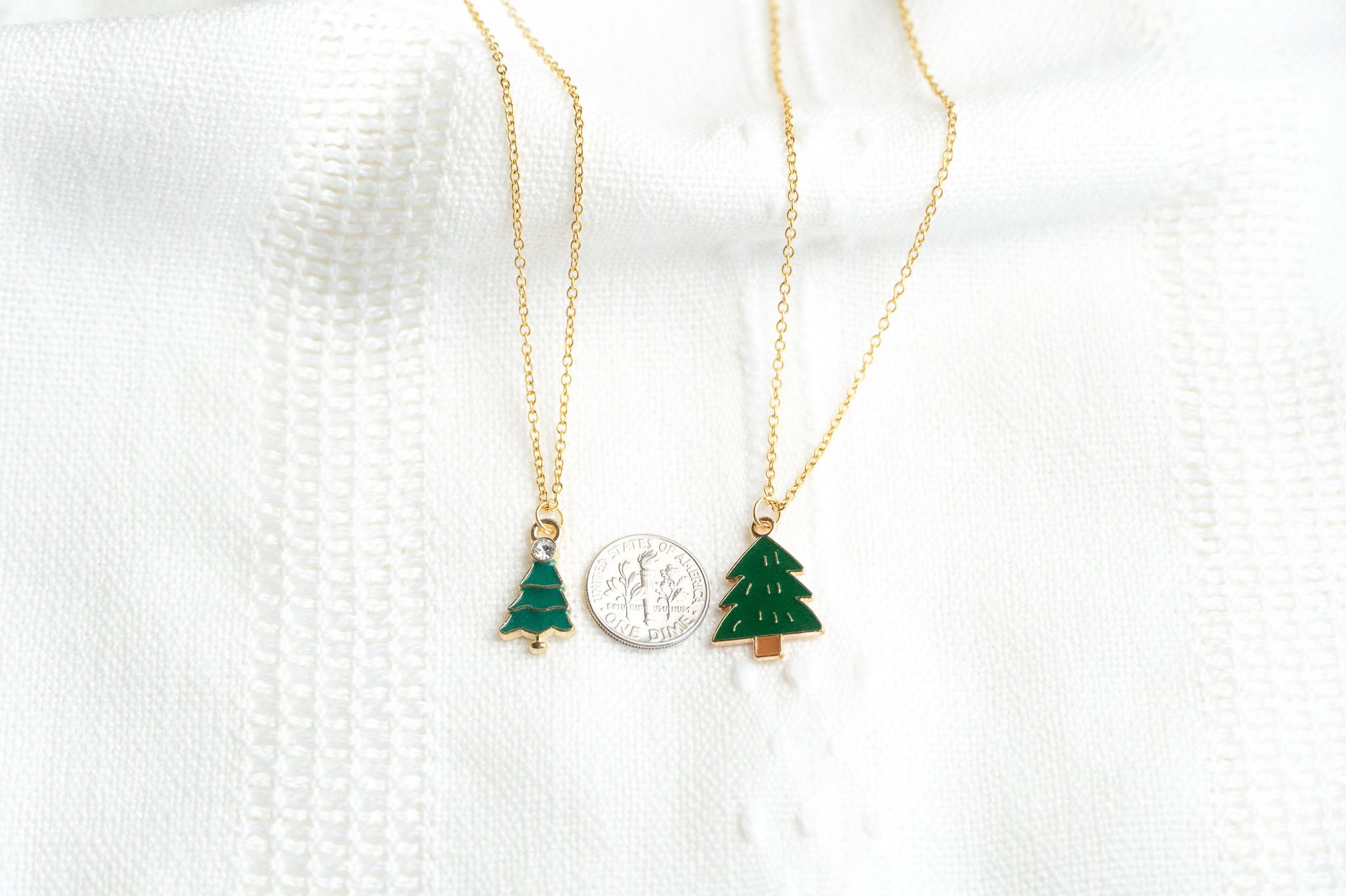 Add some holiday spirit to your outfit with our Christmas Tree Charm Necklace! Select from three one-of-a-kind tree designs to create the perfect festive vibe. This necklace makes for a great winter accessory or a unique gift for the season. Spread the cheer of Christmas today by personalizing it with a hand-stamped initial charm.