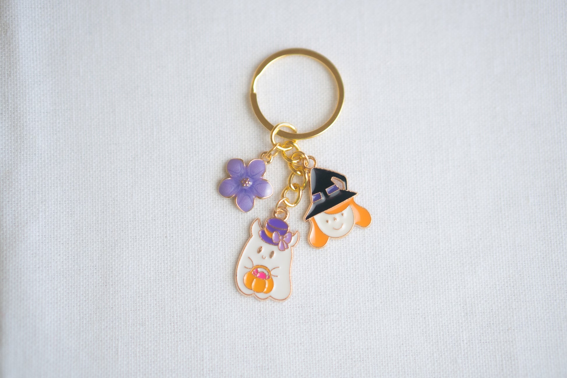 Looking for a fun and unique accessory to add some personality to your keys or purse? Check out our Halloween cute keychain with a witch, ghost, and purple flower design! Perfect for yourself or as a gift for someone special. Great for showing off your quirky style and adding a touch of humor to your daily routine.