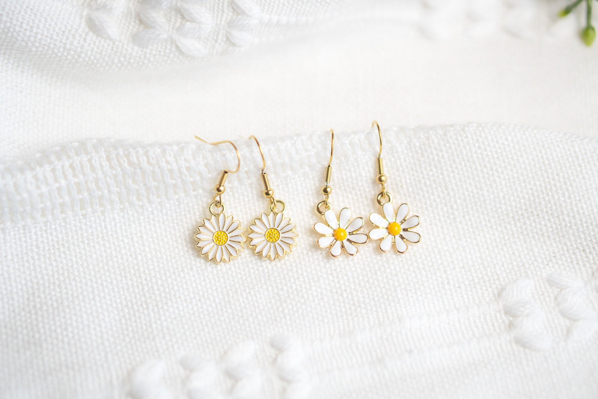 Introducing our beautiful sunflower or daisy flower drop earrings! These dainty and cute earrings feature a minimalist style that will elevate any outfit. Perfect for daily wear or to match with a sundress, they also make great gifts for friends or sisters. Get ready to bloom with these stunning earrings!